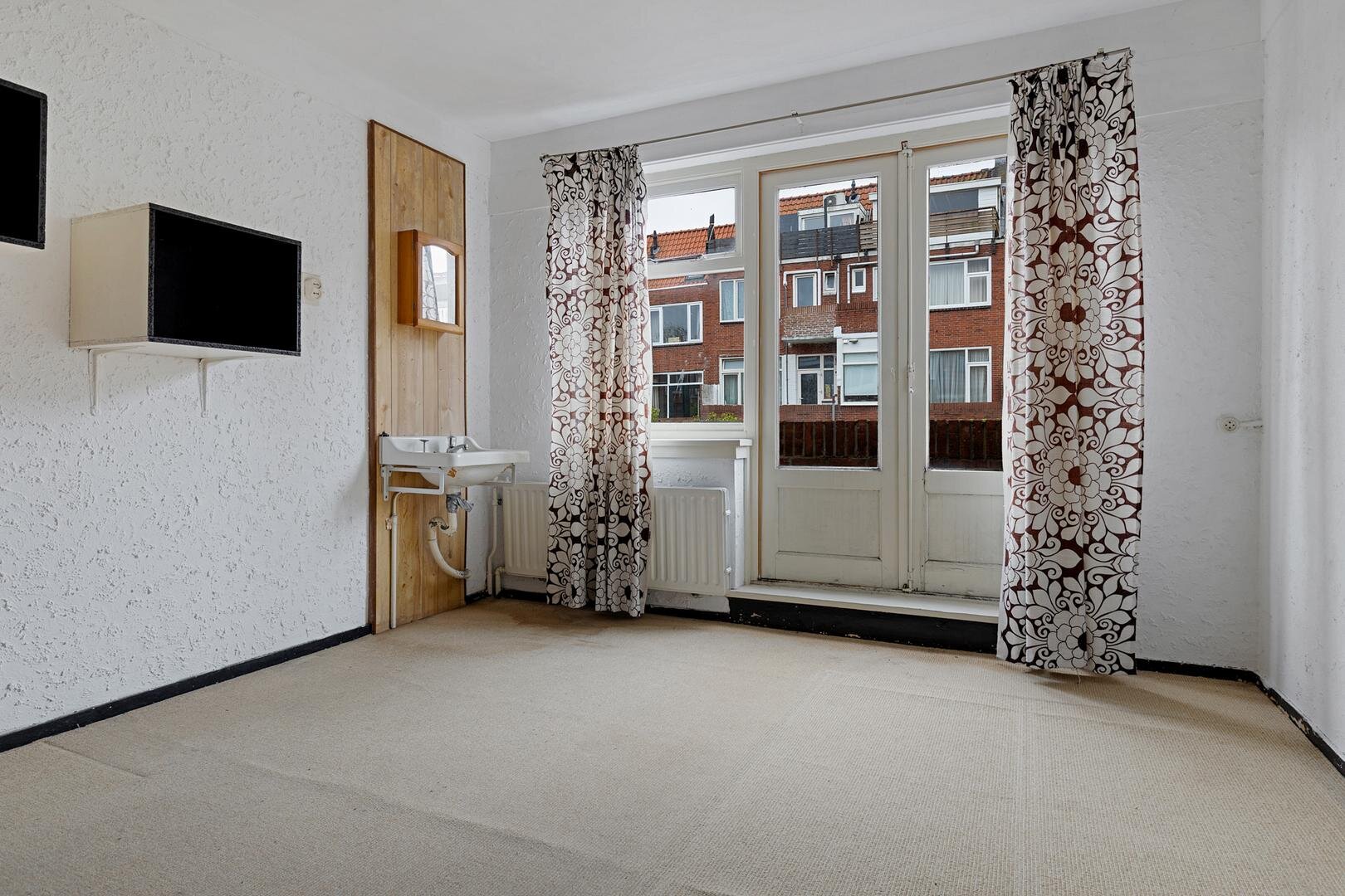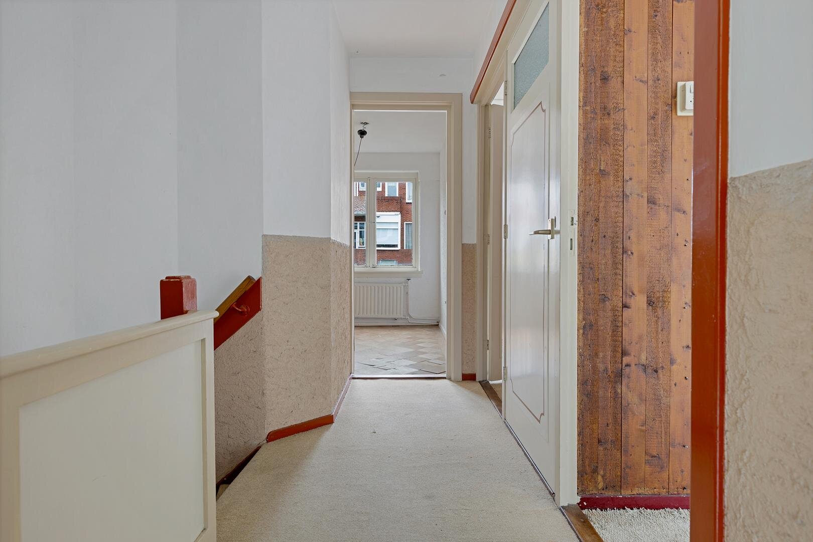 Overloop met inbouwkast, drie slaapkamers van circa 6, 13 en 14 m², allen voorzien van vaste kastruimte en de grootste heeft openslaande deuren naar het balkon. Badkamer met douche en wastafel. Vaste trap naar de ...