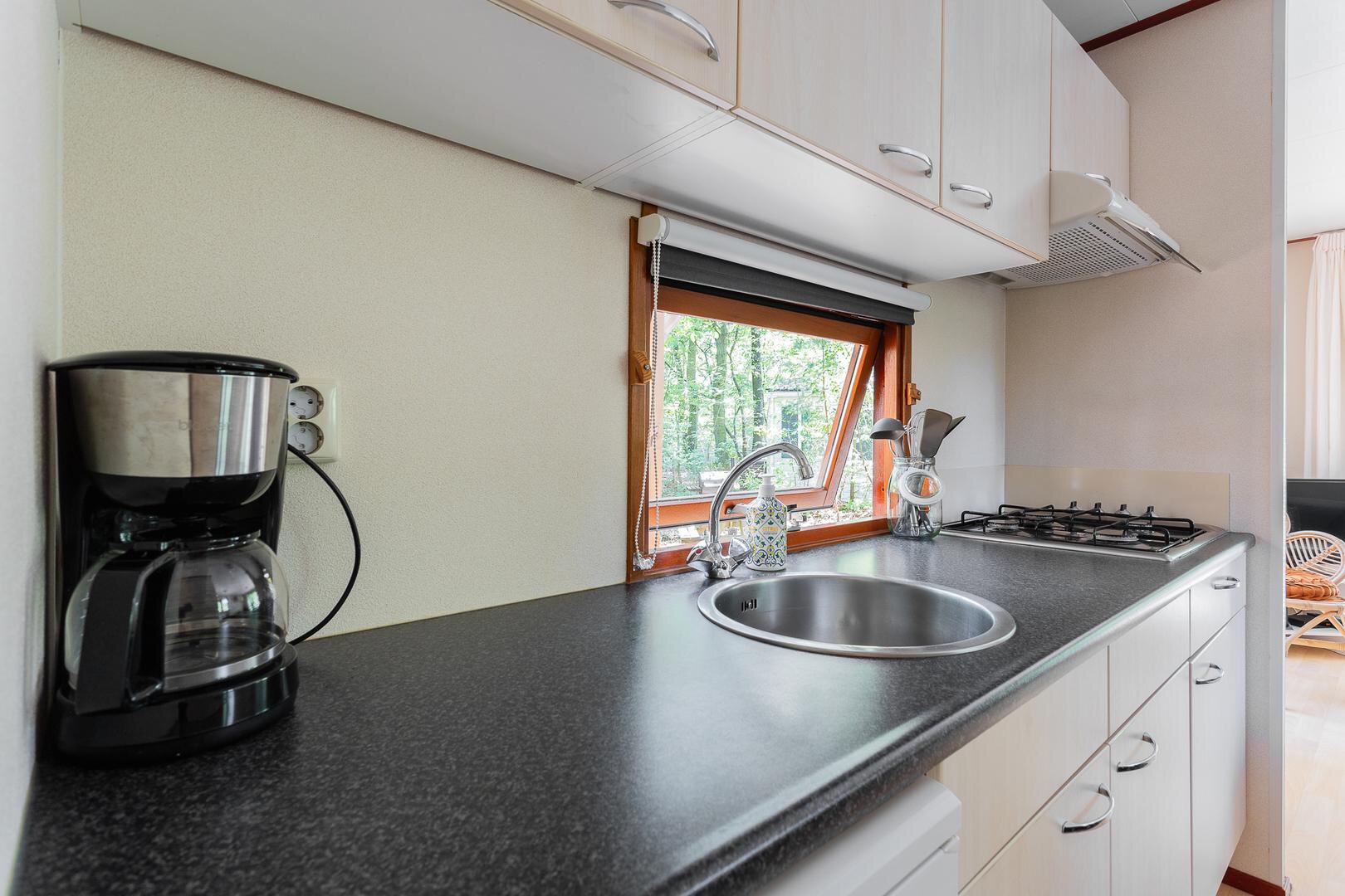 Indeling: woonkamer met openslaande deuren naar de veranda, open keuken, badkamer met douche en toilet, ruime slaapkamer met vaste kasten. In de woonkamer is een 2-perssons opklapbed aanwezig. voor het chalet is een parkeerplaats op eigen grond. De inventaris is inbegrepen in de koopsom (zie de lijst van zaken)