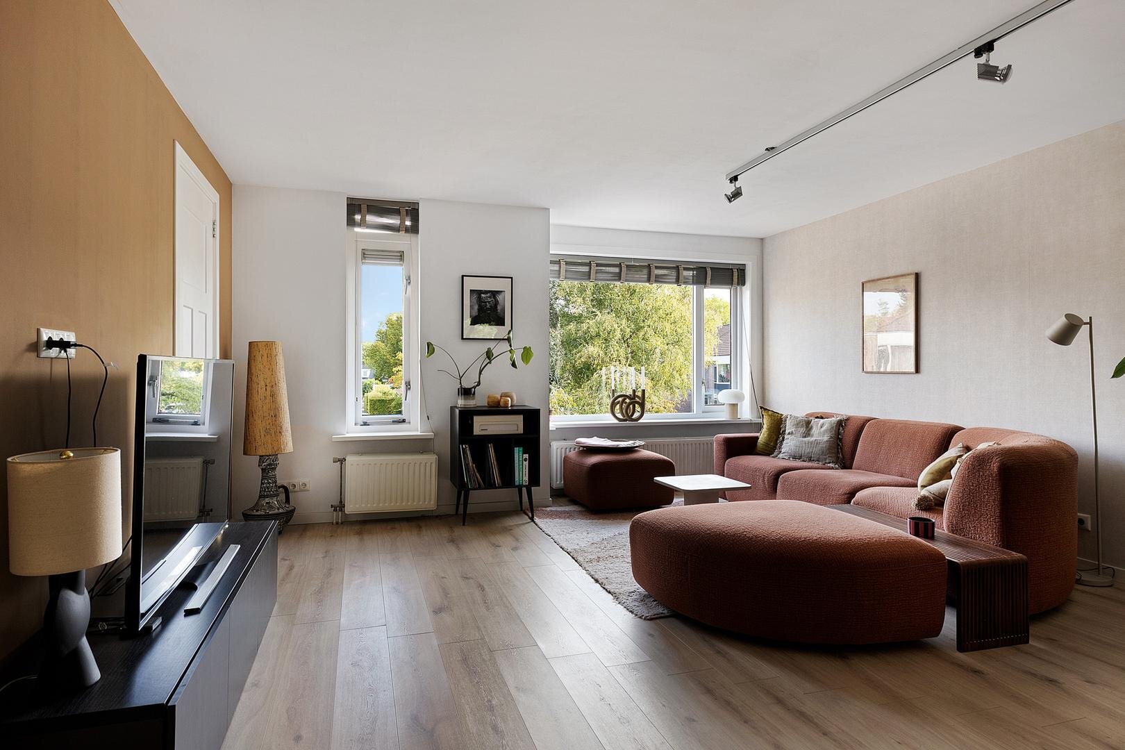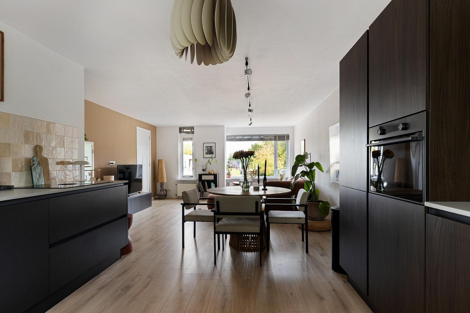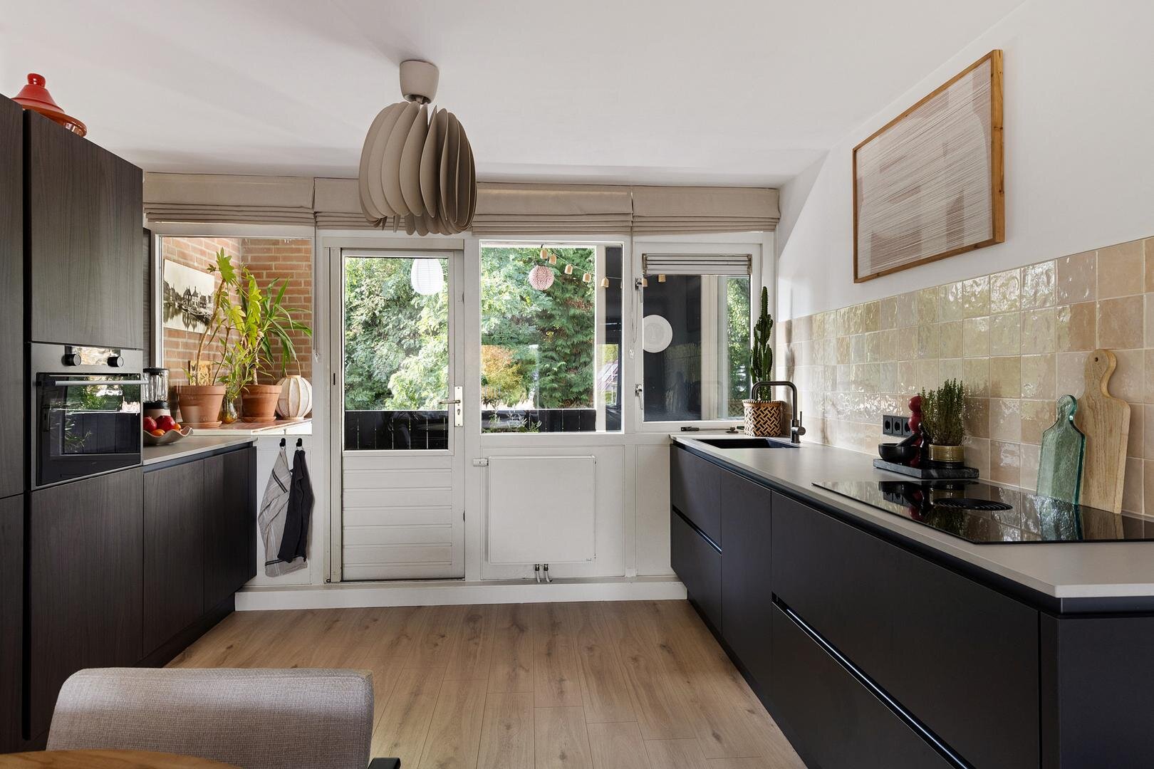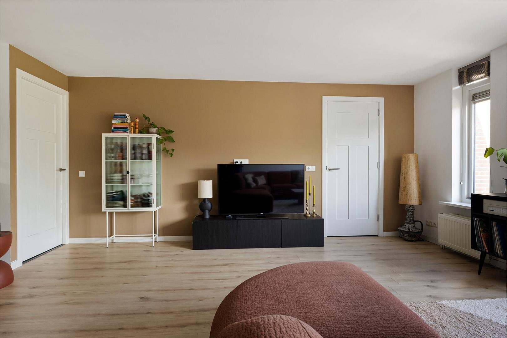1e verdieping: entree / hal met meterkast, modern toilet en trapopgang, woonkamer (ca. 26 m2) met veel lichtinval, open keuken (ca. 11 m2) met een moderne, luxe keuken (2023) voorzien van diverse inbouwapparatuur, aansluitend het balkon aan de achterzijde op het zuid westen georiënteerd, ruime kamer (ca. 12 m2) welke multifunctioneel te gebruiken is (slaapkamer / speelkamer / werkplek enz), aansluitend aan deze kamer de gemoderniseerde badkamer (met 2e toilet, inloopdouche en wastafelmeubel)
