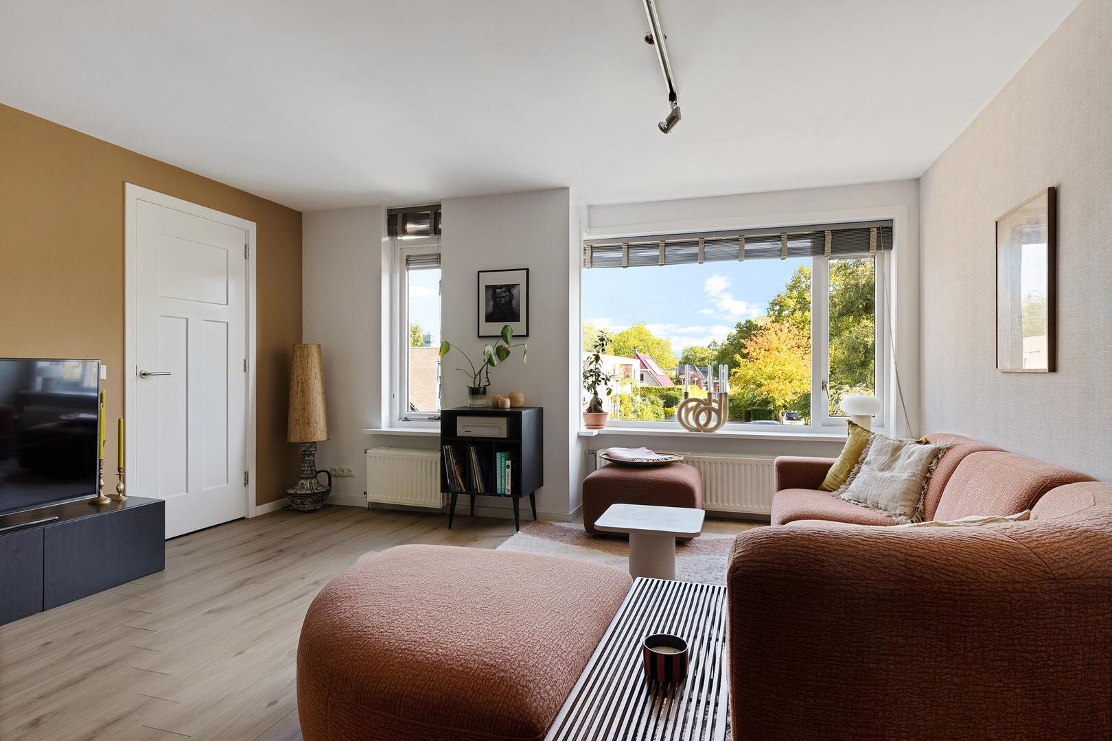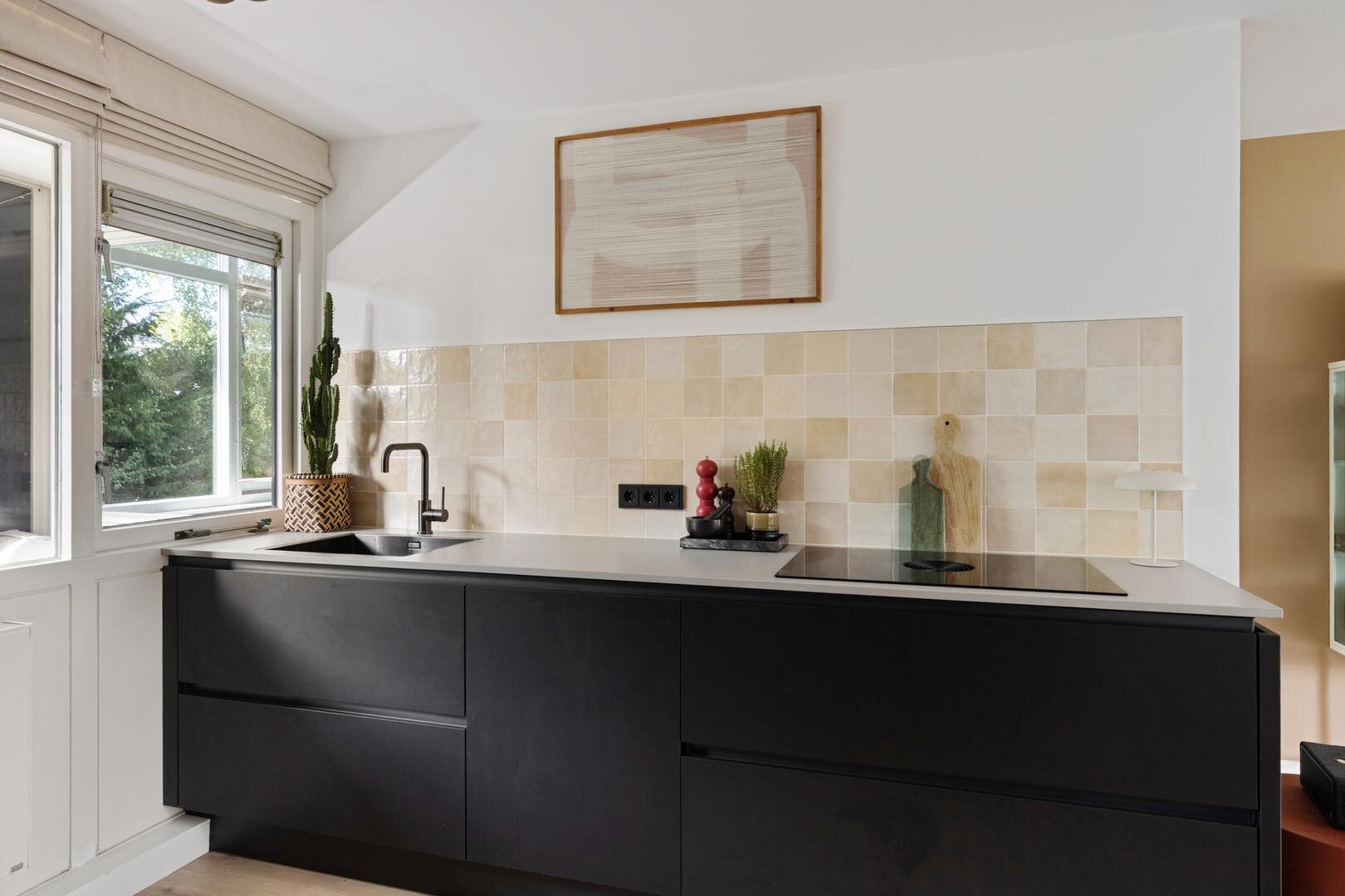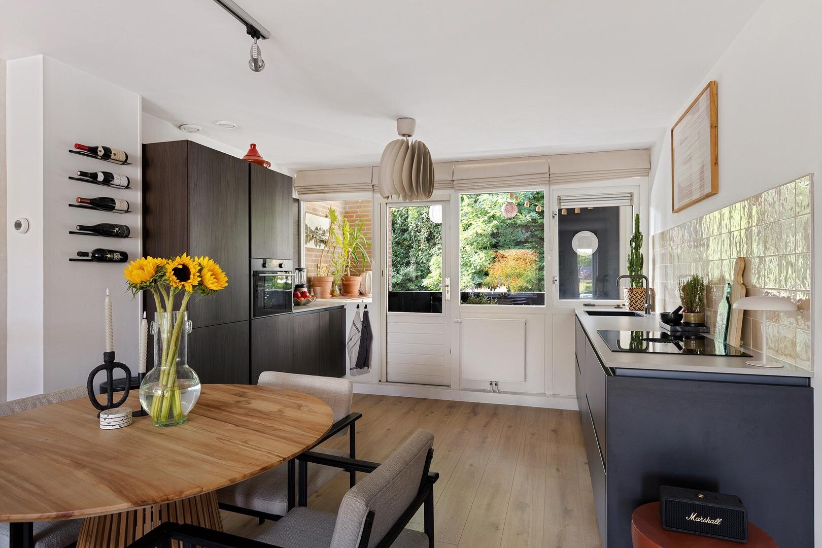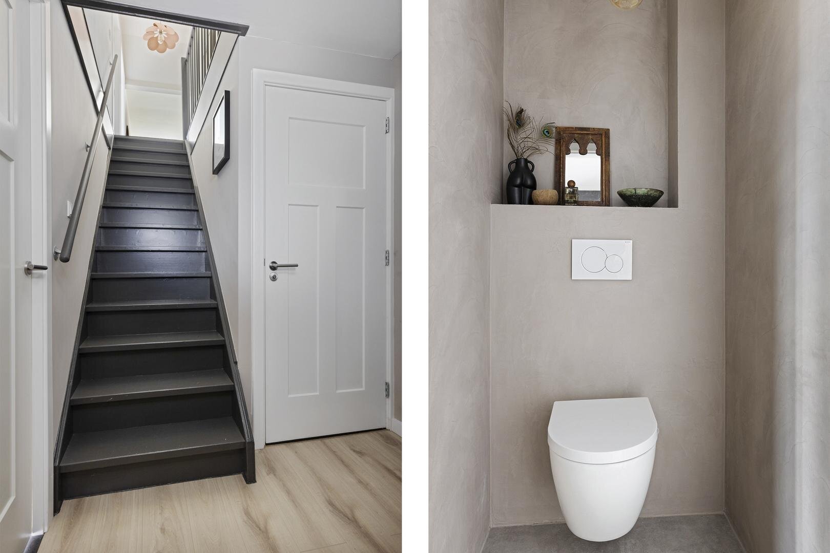 1e verdieping: entree / hal met meterkast, modern toilet en trapopgang, woonkamer (ca. 26 m2) met veel lichtinval, open keuken (ca. 11 m2) met een moderne, luxe keuken (2023) voorzien van diverse inbouwapparatuur, aansluitend het balkon aan de achterzijde op het zuid westen georiënteerd, ruime kamer (ca. 12 m2) welke multifunctioneel te gebruiken is (slaapkamer / speelkamer / werkplek enz), aansluitend aan deze kamer de gemoderniseerde badkamer (met 2e toilet, inloopdouche en wastafelmeubel)