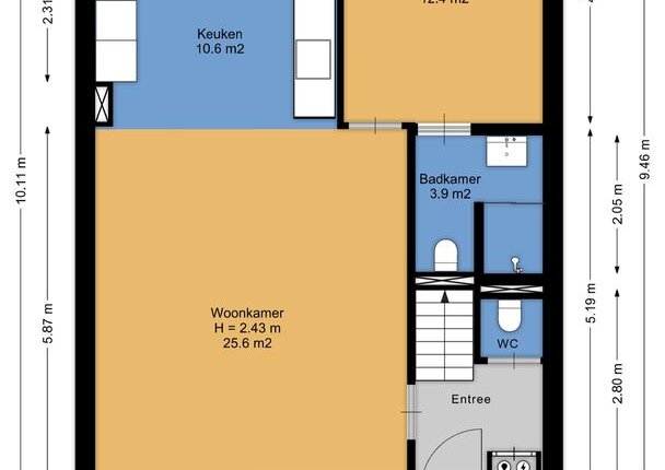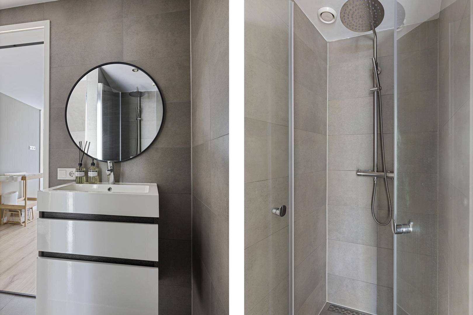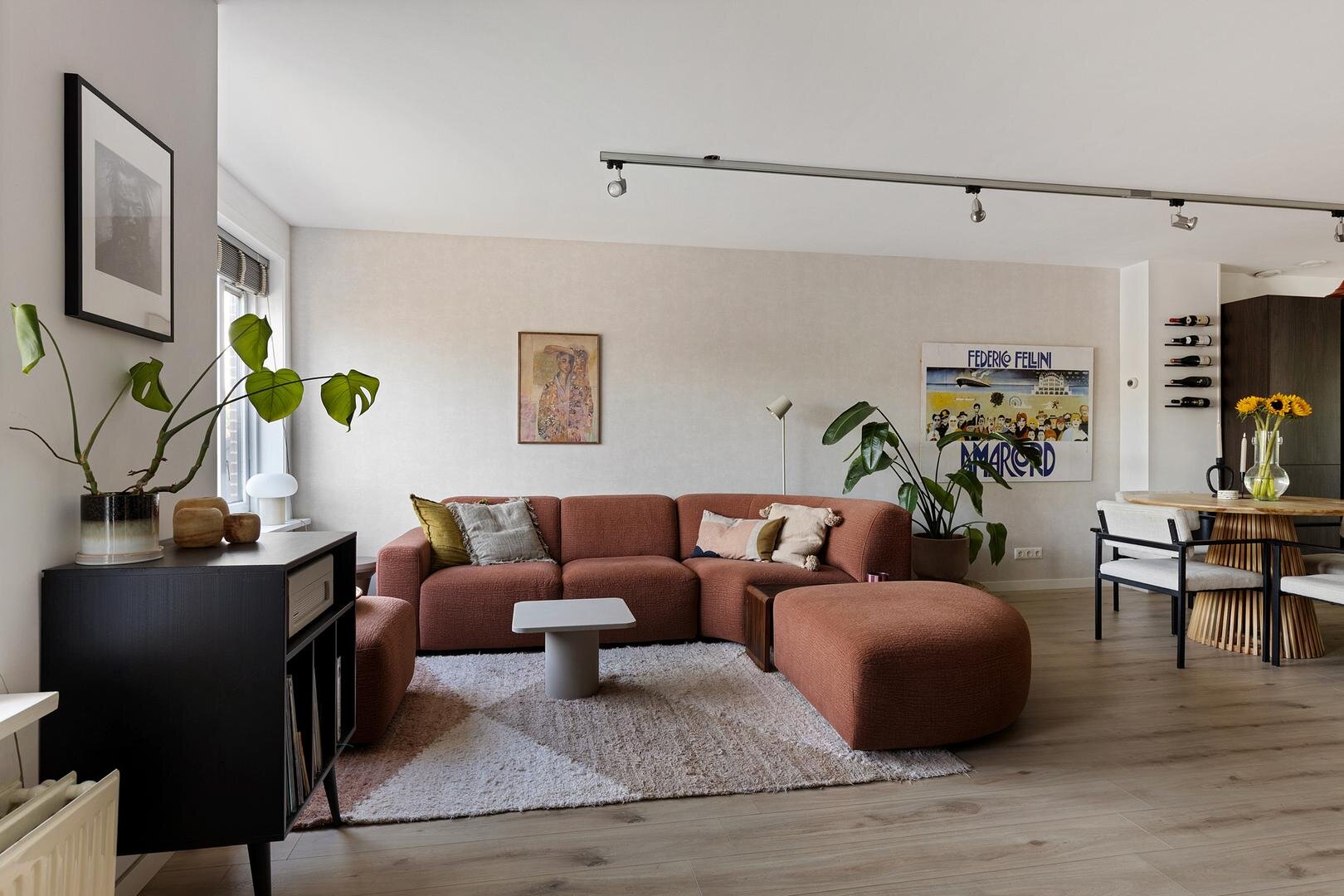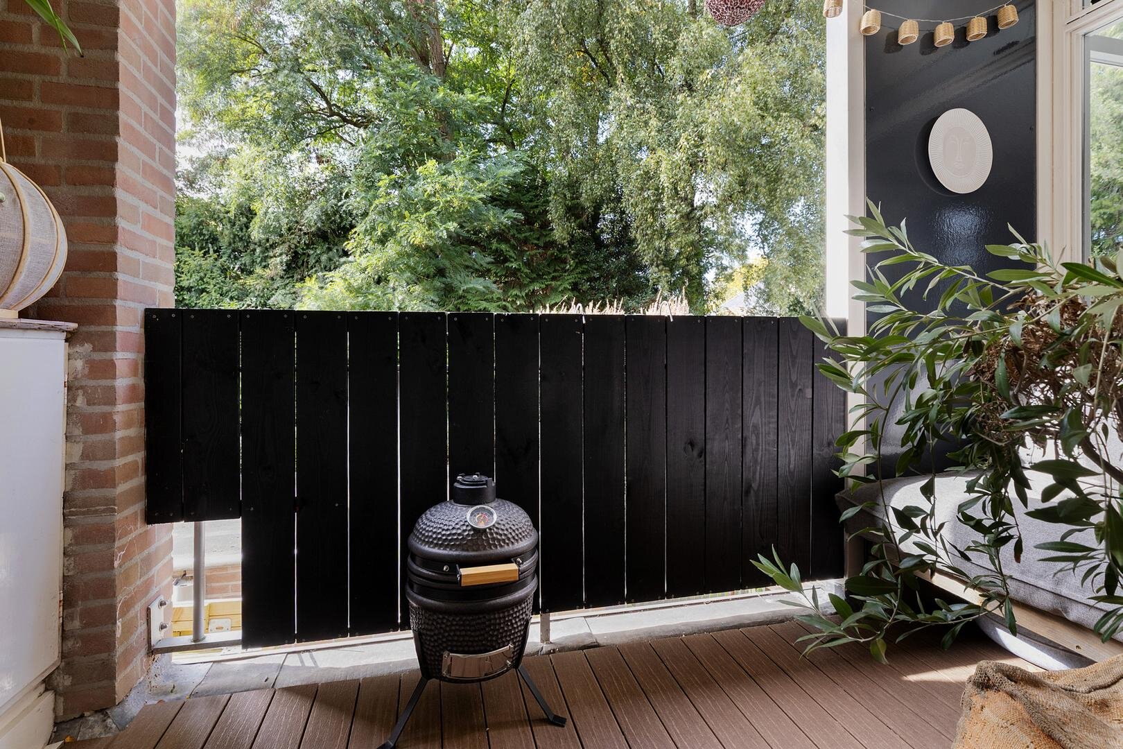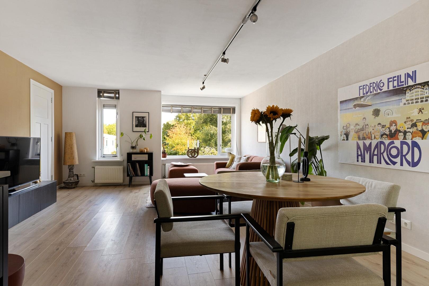 1e verdieping: entree / hal met meterkast, modern toilet en trapopgang, woonkamer (ca. 26 m2) met veel lichtinval, open keuken (ca. 11 m2) met een moderne, luxe keuken (2023) voorzien van diverse inbouwapparatuur, aansluitend het balkon aan de achterzijde op het zuid westen georiënteerd, ruime kamer (ca. 12 m2) welke multifunctioneel te gebruiken is (slaapkamer / speelkamer / werkplek enz), aansluitend aan deze kamer de gemoderniseerde badkamer (met 2e toilet, inloopdouche en wastafelmeubel)